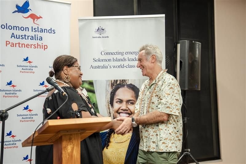 24 Australia Awards scholars welcomed home in Honiara, recognised for studies supporting Solomon Islands development.