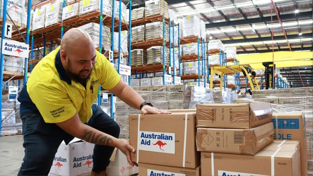 Australia is working to build two, more compact, local humanitarian warehouses in Solomon Islands: this image shows the whole-of-region Pacific Humanitarian Warehouse based in Brisbane.
