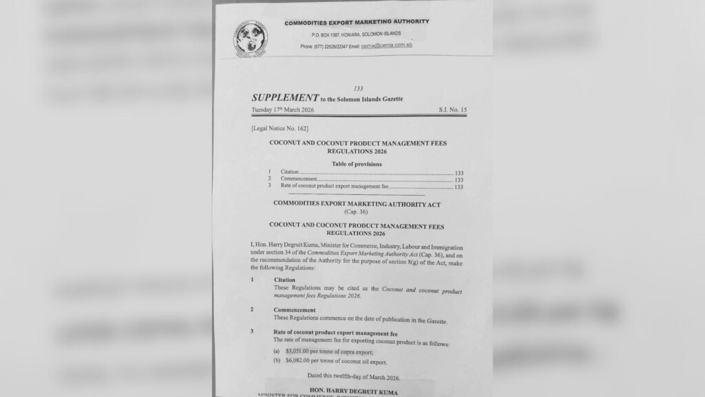 The main area of concern on the fee increase is the significant reduction in farmer returns. With current market conditions indicating a copra price of approximately SBD6.00 dollars per kilogram, the application of a SBD3.05 management fee effectively reduces farmer earnings to less than half.